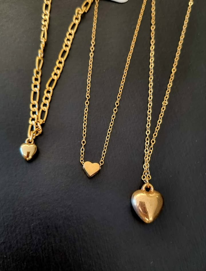 Kit 3 colares dourados - corações